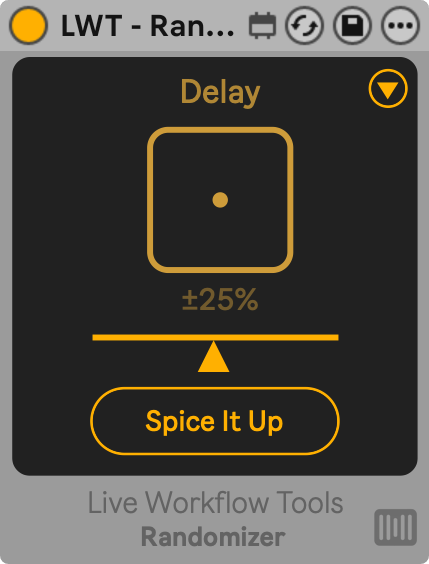Place it after any instrument or any audio or MIDI effect. Hit the Dice button to generate a completely new preset with one click. You can adjust the deviation range with a slider and choose exactly which parameters will be affected. Certain parameters are excluded automatically to make the randomised preset more likely to be useful.